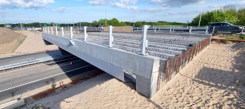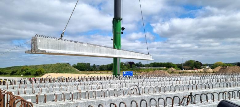 Til Arkil A/S, Fundering, som har opført en bro over E45 på Ringvej Syd ved Randers, har vi leveret 744 lbm OT-bjælker (28 stk.) og fire kantbjælker.