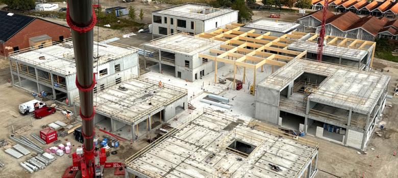 For Hansson & Knudsen A/S leverer og monterer vi betonelementer til Generationernes Hus i Nivå. Byggeprojektet på i alt 16.400 m² fordelt på 2-3 etager består af en folkeskole centralt i byggeriet omgivet af bibliotek, kulturhus, idrætshal og svømmehal.