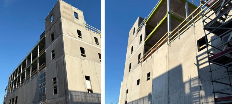 - 29 trappeløb i grå beton fordelt på to trappetårne
